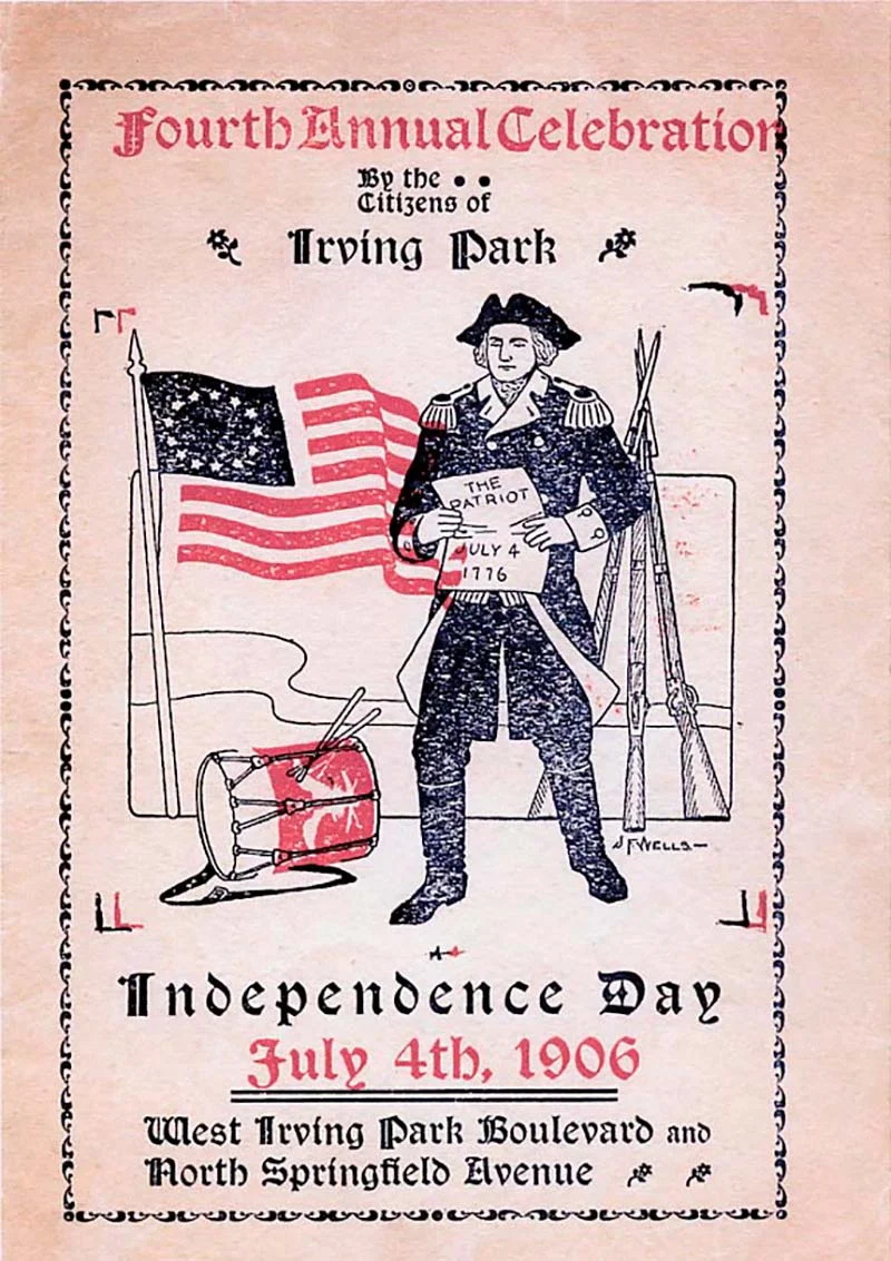 Beginning in 1903, neighborhood groups worked together to plan Irving Park’s first annual 4th of July celebration. The event began with a morning parade headed by members of the Grand Army of the Republic. The procession led to what is now the park’s location forall-day festivities with a ball game, athletic competitions, and such patriotic addresses as a reading of the Declaration of Independence.