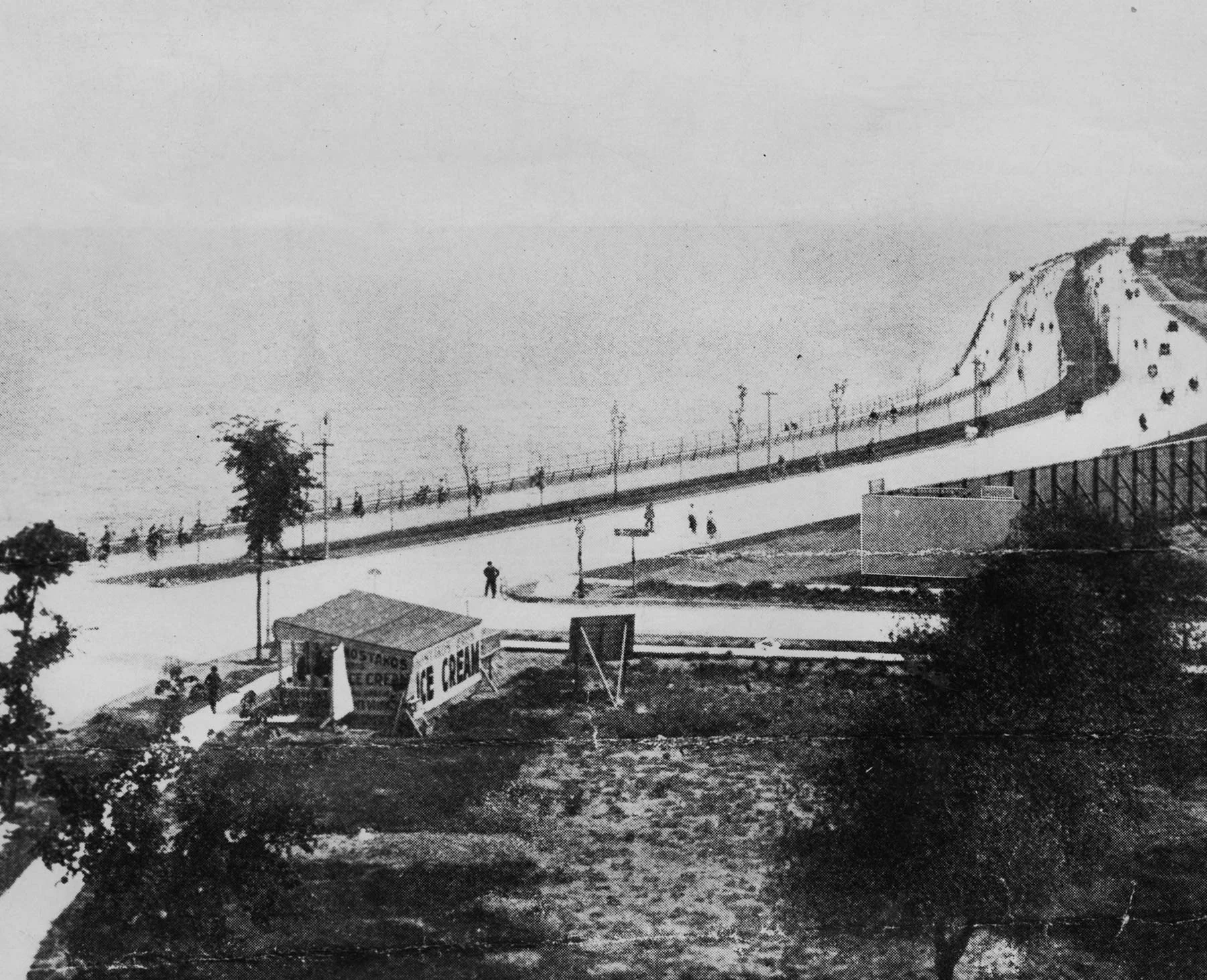 In the early 1890s, the Lincoln Park Commissioners began making plans for stretches of bicycle paths along the lakefront, including a 27-foot-wide path along the granite paved beach south of Oak Street. A few years later, they announced an even more ambitious scheme for a landfill extension area north of Belmont Avenue. On September 14, 1895, the Chicago Tribune reported that this project would include two paths adjacent to Sheridan Road (which is now part of North Lake Shore Drive)—a 16-foot-wide bicycle path and 14-foot-wide bridle path. The Lincoln Park Board President Andrew Crawford described the 4,800-foot-wide promenade and double paths as “the grandest thing in the world, being considerably longer than that at Naples, which attracts so much attention.”