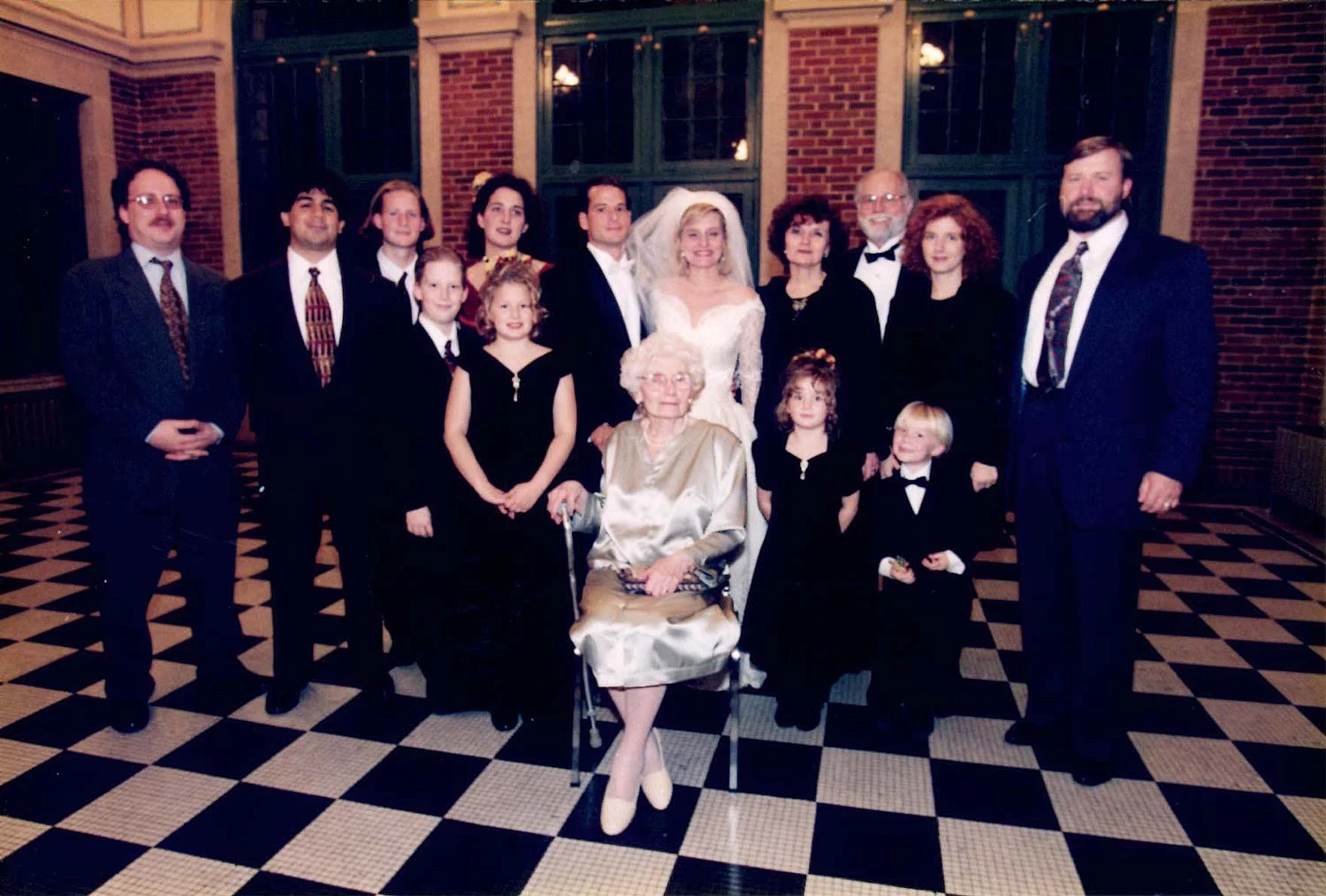 In this family photograph from my wedding, my grandmother, Piri Neumann, is seated in the front, 1996.