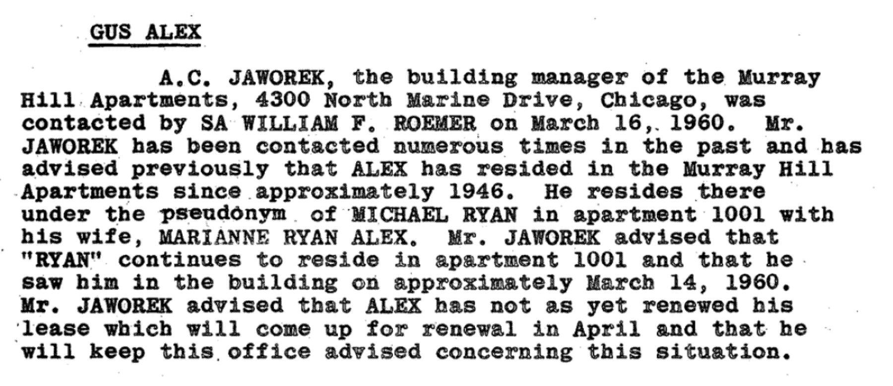 Excerpt of FBI report on Gus Alex, March 16, 1960. Available at: https://www.archives.gov/files/research/jfk/releases/docid-32306964.pdf