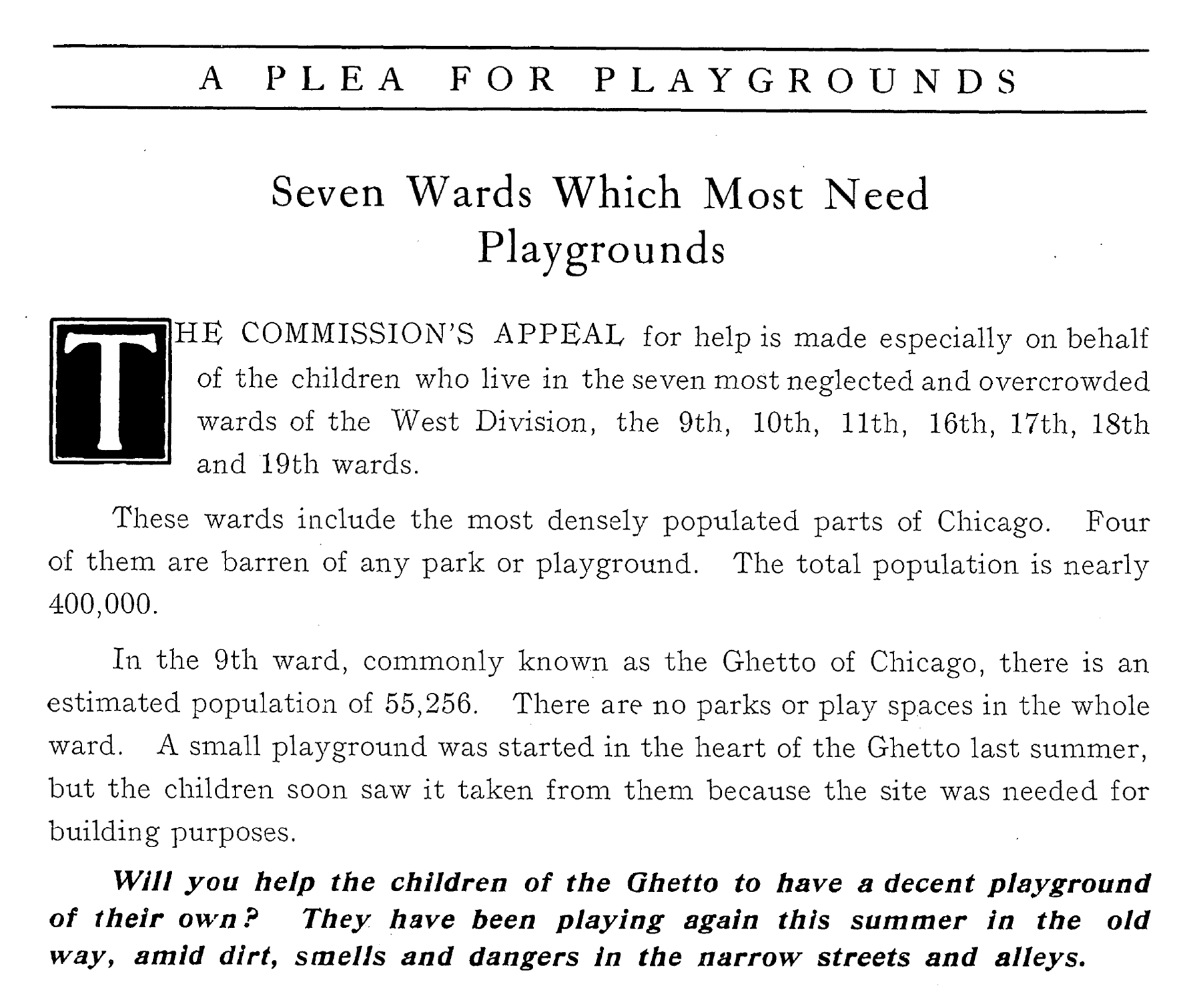 A Plea for Playgrounds, Special Park Commission, 1905, p. 11.