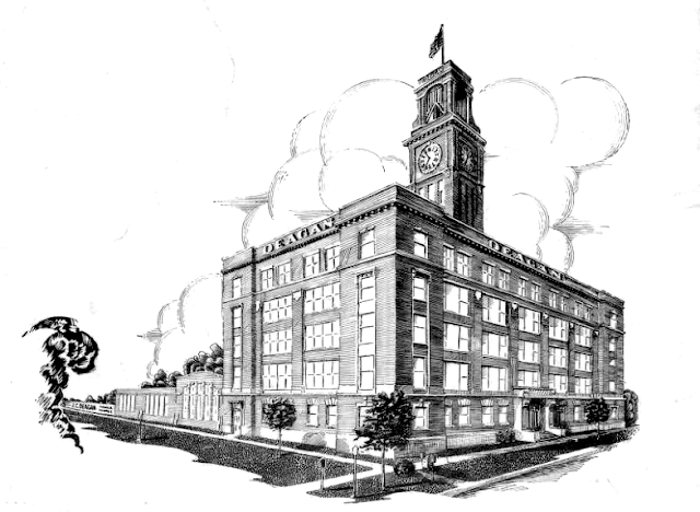 In late 1909, when the Progress Company was quite busy producing books and magazines and even sponsoring a correspondence school called Self-Help University, the Chicago Tribune announced that the firm had plans to build a new plant at the corner of W. Berteau and N. Ravenswood avenues. The article includes a rendering of a three-and-a-half-story structure without a clock tower. The accompanying text explains that the Progress Co. building would include space for its publishing interests and correspondence school as well as a printing plant with a press and composing room and an electrotype foundry and power plant.