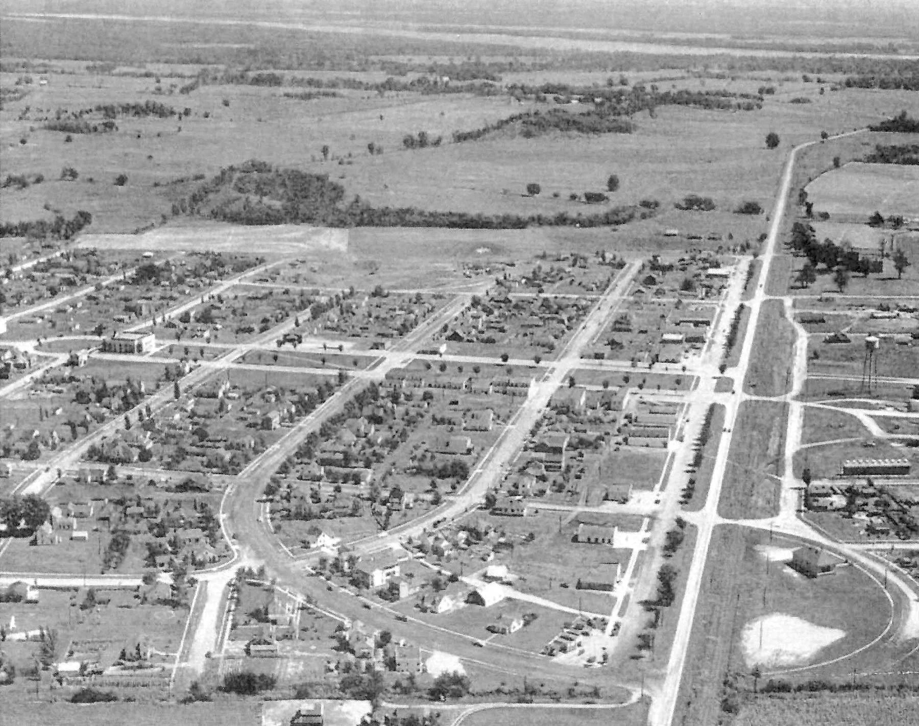 Aerial view of new Shawneetown following Mary Long Rogers’ plan, ca. 1945.