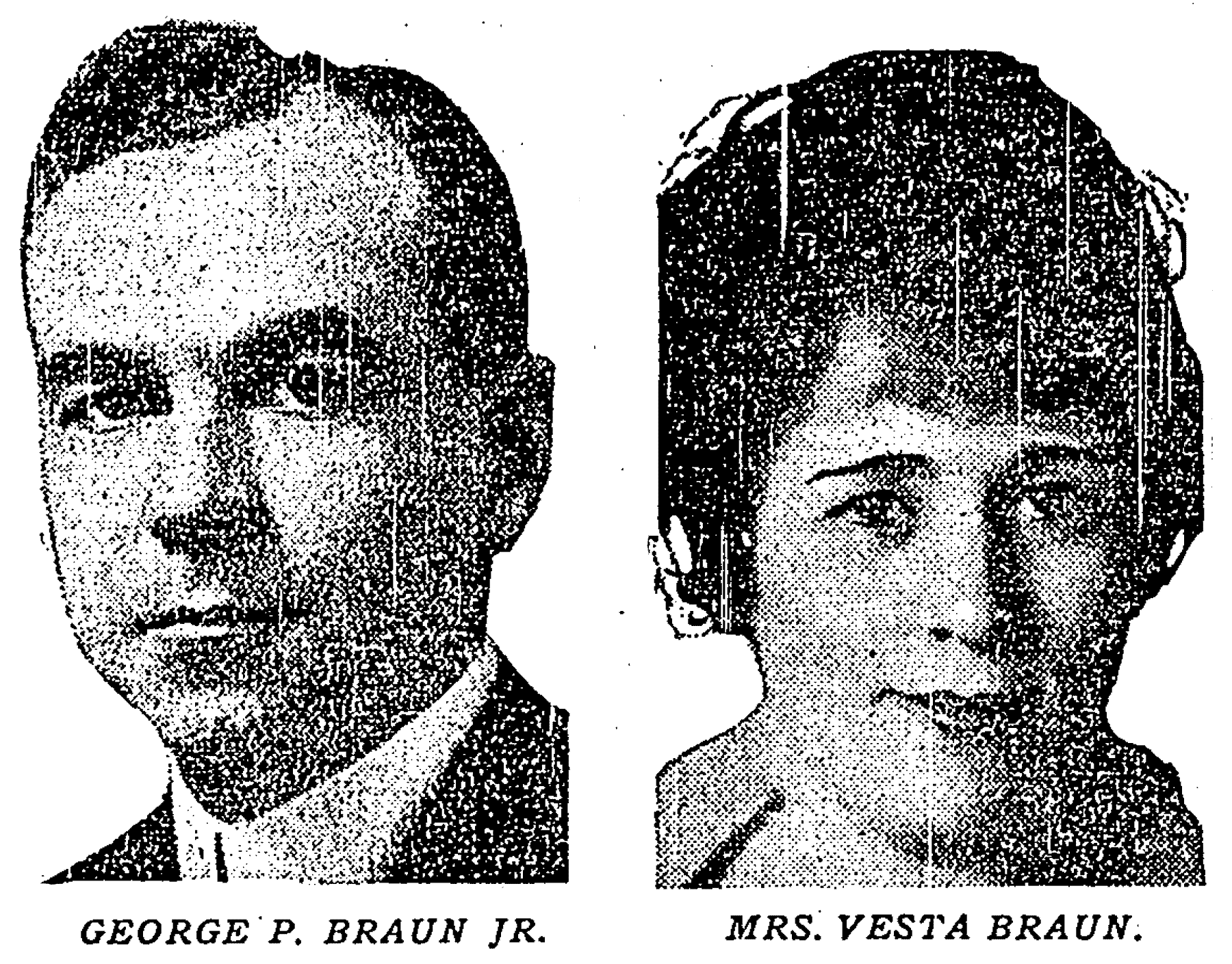 These headshots of George P. Braun, Jr., and Mrs. Vesta Braun were published in the Chicago Tribune on January 21, 1922.